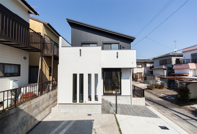 狭小地 変形地 高低差のある土地で光を取り入れるガラスのスリットのある家 山科の家 注文住宅事例 Suvaco スバコ