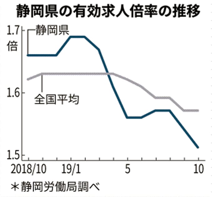 静岡県内10月の有効求人倍率 前月比0 03ポイント低下 日本経済新聞