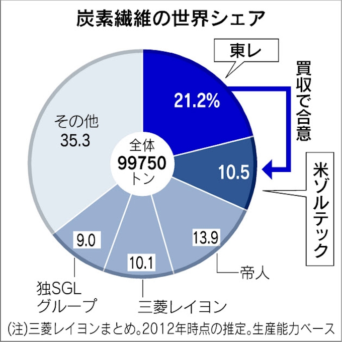 東レ 米炭素繊維大手を買収 世界シェア3割に 日本経済新聞