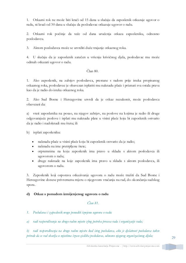 Otkaz ugovora o radu kojeg daje poslodavac I.dio Martina Novosel dipl.iur. Poslodavac može otkazati ugovor o radu redovitim otkazom u slijedećim slučajevima:. Poslodavac može zaposlenom otkazati ugovor o radu zbog nedolaska na posao ukoliko je opštim aktom poslodavca ili ugovorom o radu zaključenim sa zaposlenim, kao povreda radne obaveze ili radne discipline zbog koje se može otkazati ugovor o radu, propisan nedolazak zaposlenog na posao.