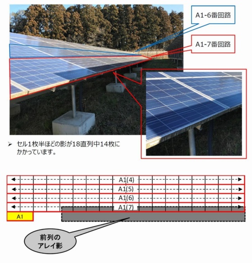売電量が2桁も下ぶれ 原因は影によるアレイ下段の出力低下 トラブル メガソーラービジネス 日経bp