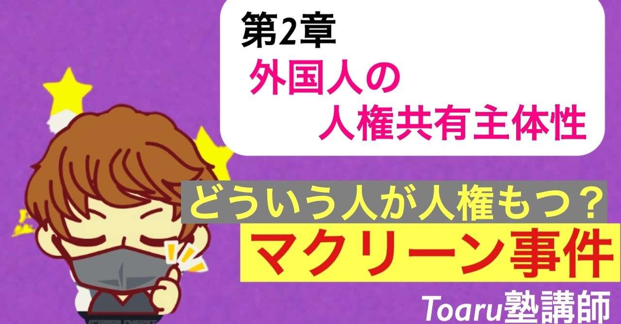 憲法 どういうひとが人権を享受できるのか 外国人 編 行政書士試験講師youtuber 法律初学者の味方 Toaru塾講師 Note