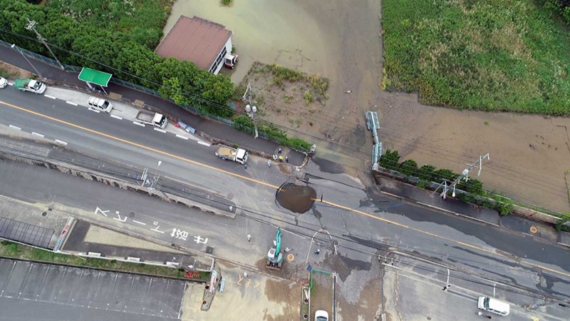 水道管破損で歩道陥没 横浜で最大40センチ冠水 社会 カナロコ By 神奈川新聞