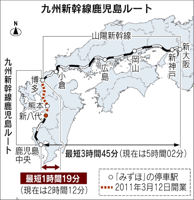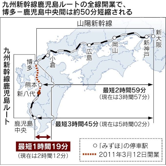 九州新幹線 新大阪 鹿児島中央間を最短3時間45分 日本経済新聞