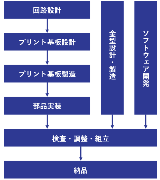部材調達 基板実装 組立検査 製造工程フロー 部品手配 プリント基板の製造 信和産業株式会社