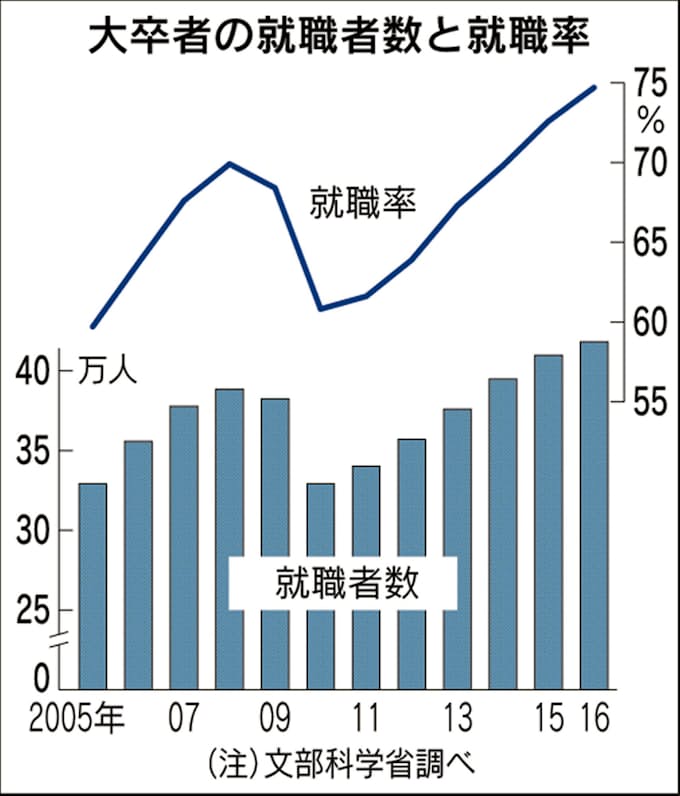 大卒就職率74 7 6年連続上昇 正規雇用増 日本経済新聞