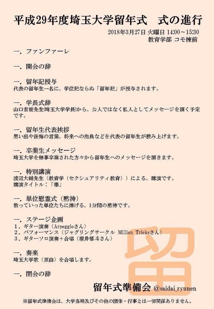 埼玉大学で非公式 留年式 留年生励まし にぎわい見せる 大宮経済新聞