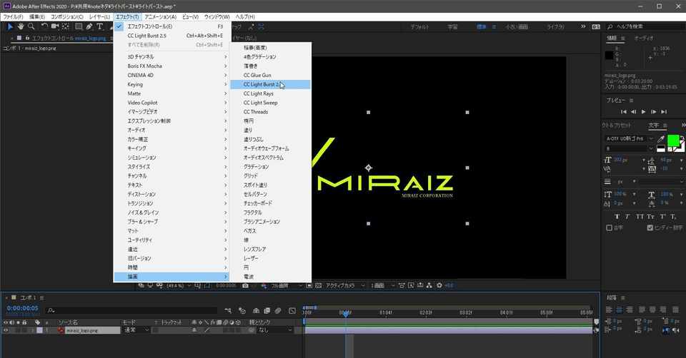 After Effectsで Cc Light Burst 2 5 Miraiz Corporation Note